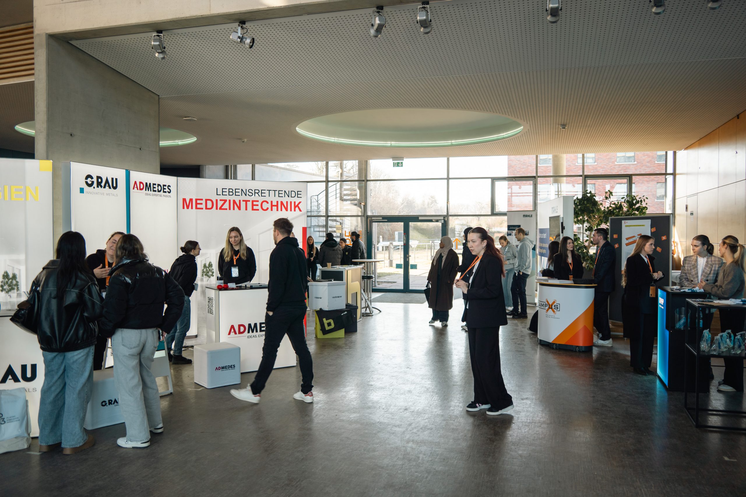 Zweimal im Jahr versammeln sich renommierte Unternehmen auf dem Campus der Hochschule Pforzheim in der Wirtschaftsfakultät, der Technikfakultät oder im Gebäude der Mensa. Wenn auch Sie Teil des X-DAYs sein möchten, nehmen Sie einfach Kontakt mit uns auf – über das Kontaktformular oder telefonisch. Gerne nehmen wir Sie in unsere Akquise-Liste auf und kontaktieren Sie im Rahmen der Akquise-Phase mit allen Informationen zum weiteren Vorgehen.